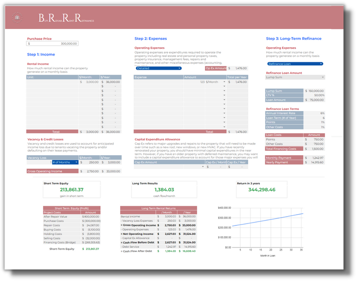 Ready to dominate the BRRR (Buy, Rehab, Rent, Refinance) method? Enter your projected rental income and see the cash flows roll in. You'll be on your way to building your empire in no time!