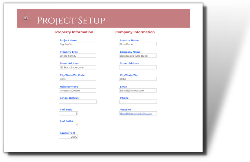 Fill in the property specifics, including purchase price, repair costs, and rental income potential. Don't forget to sprinkle some of that Boss Babe magic while you're at it!